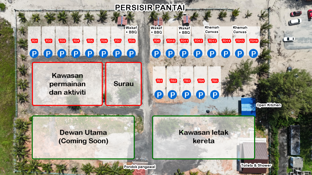 Sama ada anda ingin mendirikan khemah sendiri atau menggunakan khemah canvas yang disediakan, kami mempunyai ruang yang sesuai untuk semua jenis pengunjung. Nikmati aktiviti luar seperti memancing, berjoging, bermain bola sepak, atau sekadar menikmati matahari terbit di pantai yang indah. Untuk kemudahan tambahan, kami juga menyediakan wakaf, pit BBQ, dan dapur terbuka untuk menjadikan pengalaman berkhemah anda lebih menyeronokkan dan lengkap.